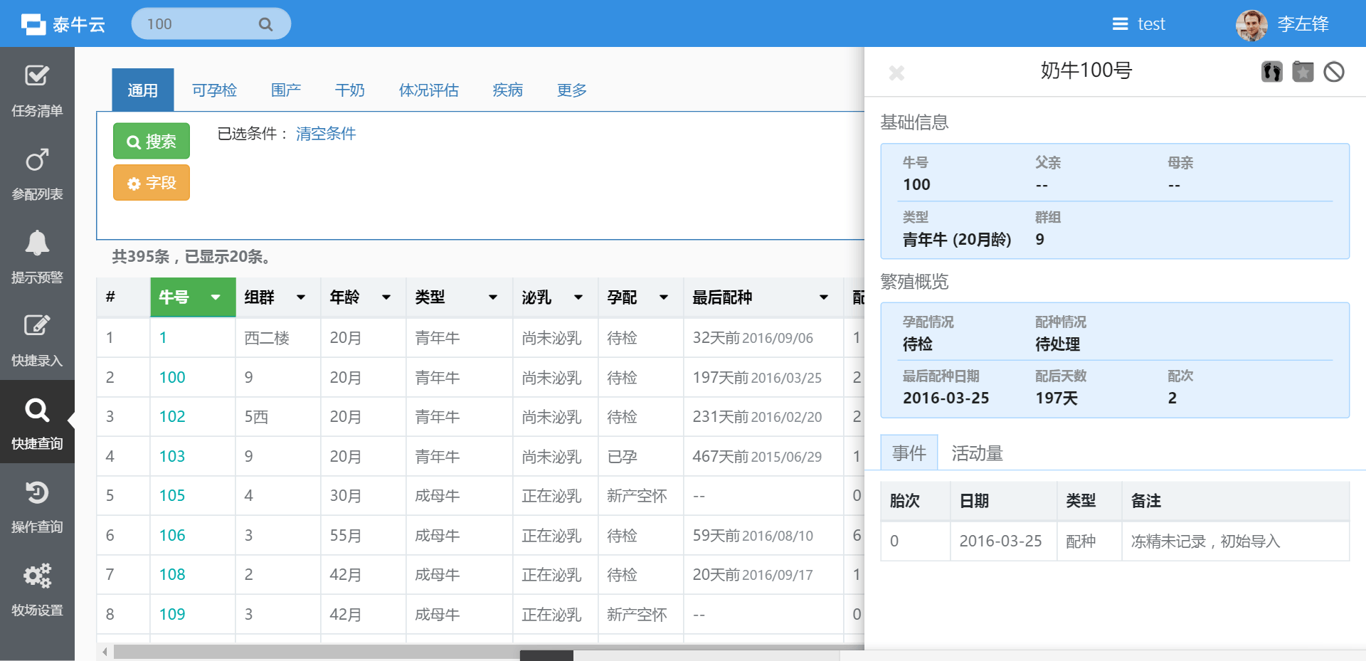 泰牛云是泰牛公司专为奶牛养殖行业打造的数据及管理一体化解决方案, 帮助牧场建立完整的奶牛档案,记录及管理牧场的日常运营行为。 依托业内专家丰富的现场经验和完整的知识体系,为牧场提供专业的流程化管理解决方案。